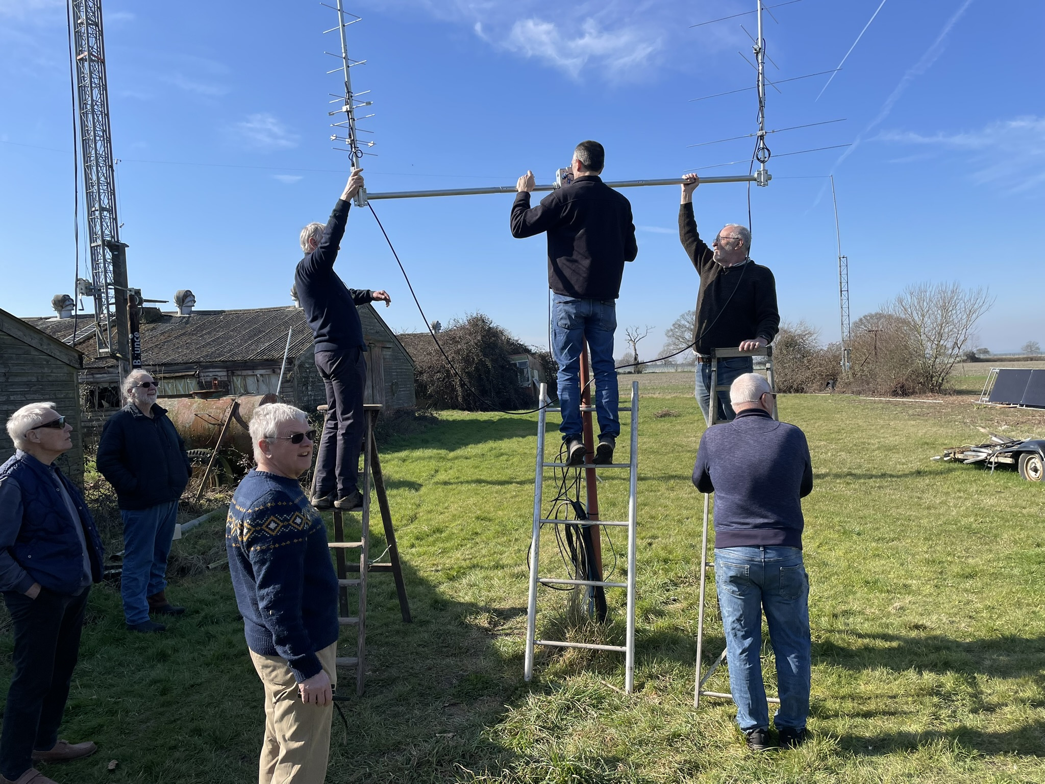 Kevin G0MLO loaned a brand-new set of M2 LEO circularly polarised satellite antennas which were assembled at the Club (70cms) and Kevin's QTH (2m) and these were erected in beautiful sunshine in early March and connected to new coax and control cables that been run out a couple of weeks previously.